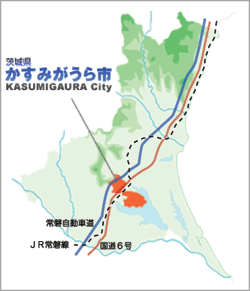 市は、わが国第2位の面積を誇る湖「霞ヶ浦」と筑波山系の南麓にはさまれ、首都東京へ約70km、県都水戸市へ約30km、筑波研究学園都市へ約10kmの距離に位置しています。