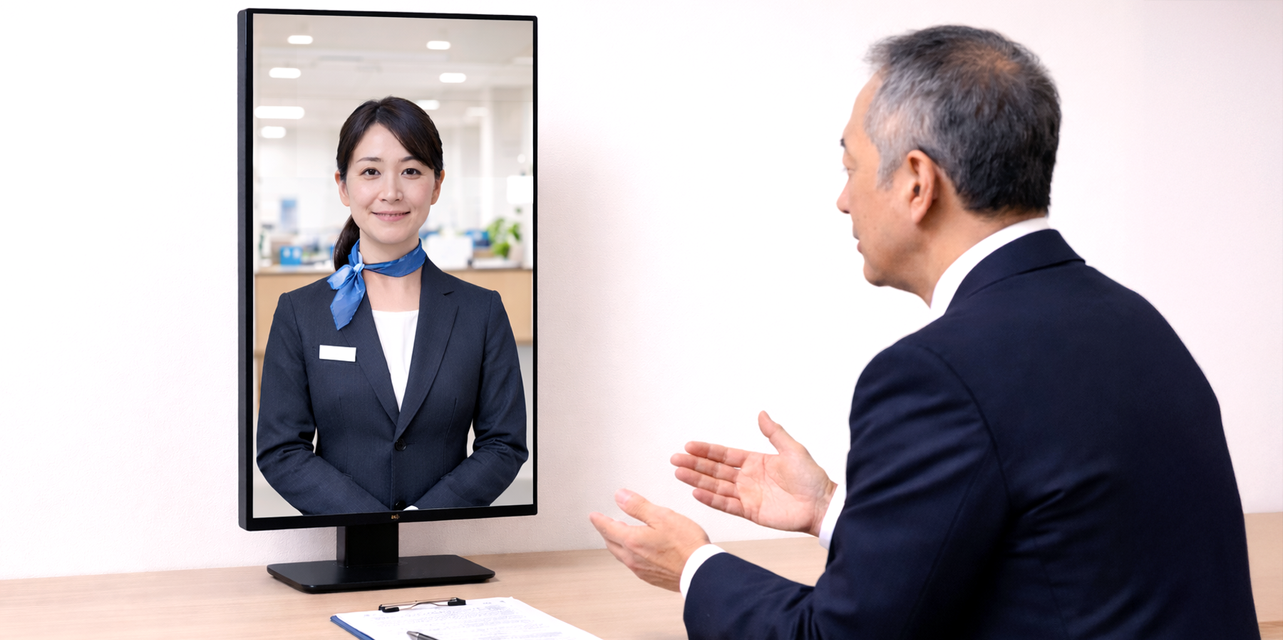 支店や出張所の窓口から、本部の専門部署へ映像で相談できます。