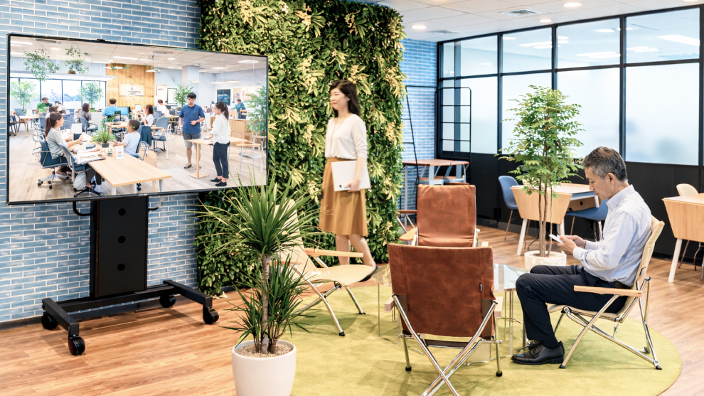 care design(フジミレニアム有限会社)【お隣オフィス】70型モニターの向こうにオフィスが続く―care designが“常時接続”で実現した「等身大の共有空間」