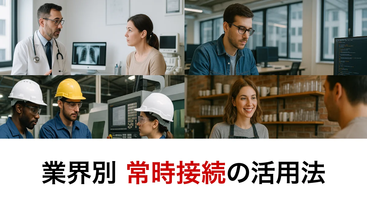 本記事では、常時接続のメリットから、業界別の活用事例、Web会議との違いなど、システム導入にあたって知っておくべき情報を網羅的にまとめました。
