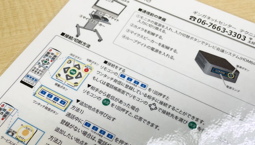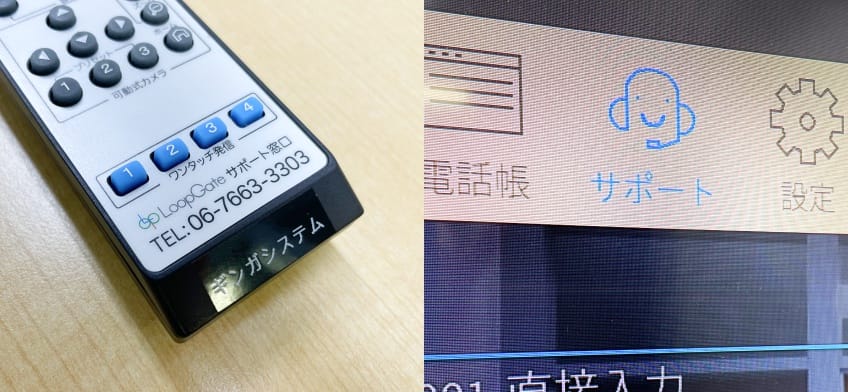 LoopGateの専用端末であれば、リモコンにサポートの連絡先が貼ってありますし、会議の画面からサポートに直接つながる窓口も設けております。