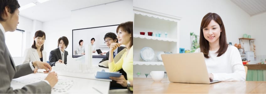 テレビ会議を常時接続して拠点間やスタッフとオフィスが繋がっていると、勤務中の状況や様子を見ることができるため、 お互いに信頼関係を保ちながら働くことができます。オフィスに出勤せずに自宅等で業務を遂行することができるので、テレワーク・在宅勤務に最適です。