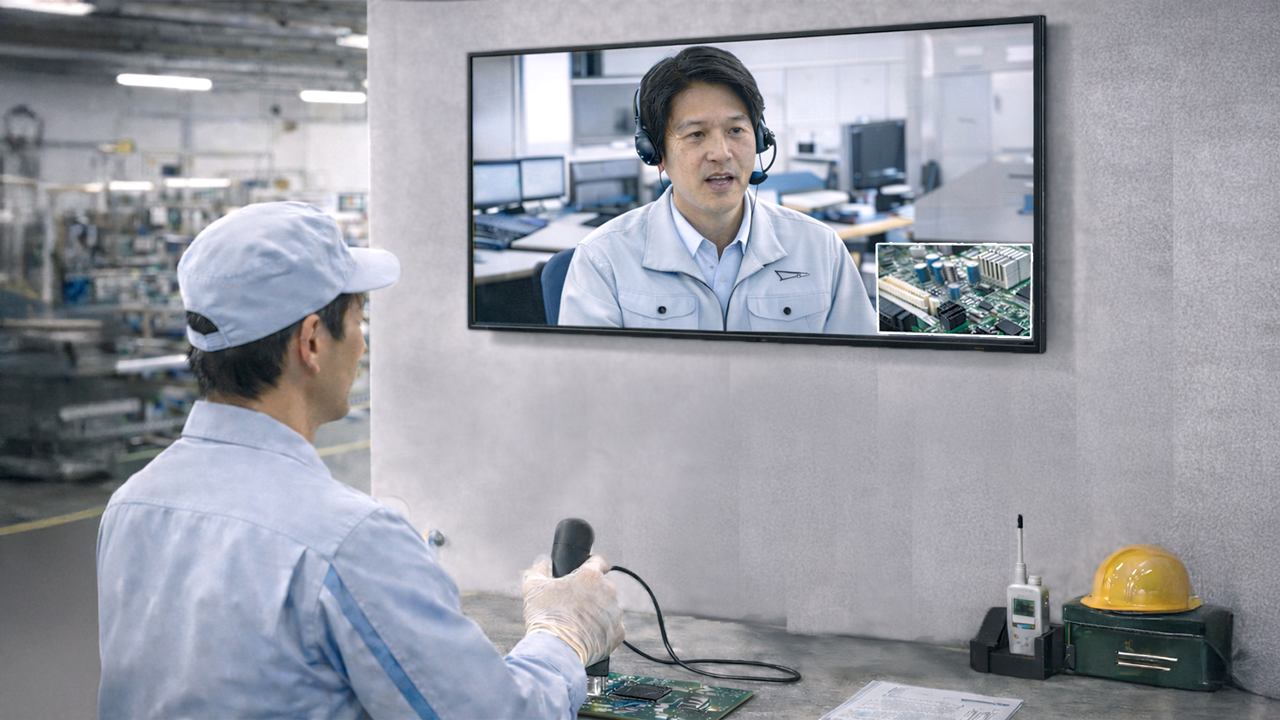 不具合や品質異常が発生した際、現場の映像と音声を即座に共有できます。