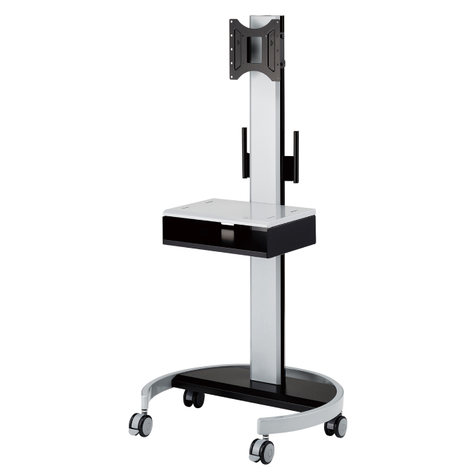 テレビ会議に必要な機器一式をまとめて設置可能。キャスターつきで場所の移動もラクラクです。棚板1枚付属 有効内寸:幅 445 × 奥行き 300 × 高さ 75 (mm)。オプションのスペアー棚板、カメラ棚板も取り扱っております。