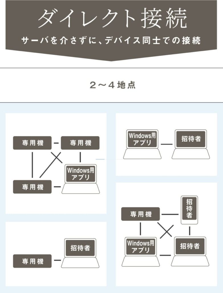 接続地点数が2~4地点であればダイレクト接続のご利用が最適です。ダイレクト接続は多地点接続サーバを介さずデバイス同士の通信となるため、通信料はかかりません。