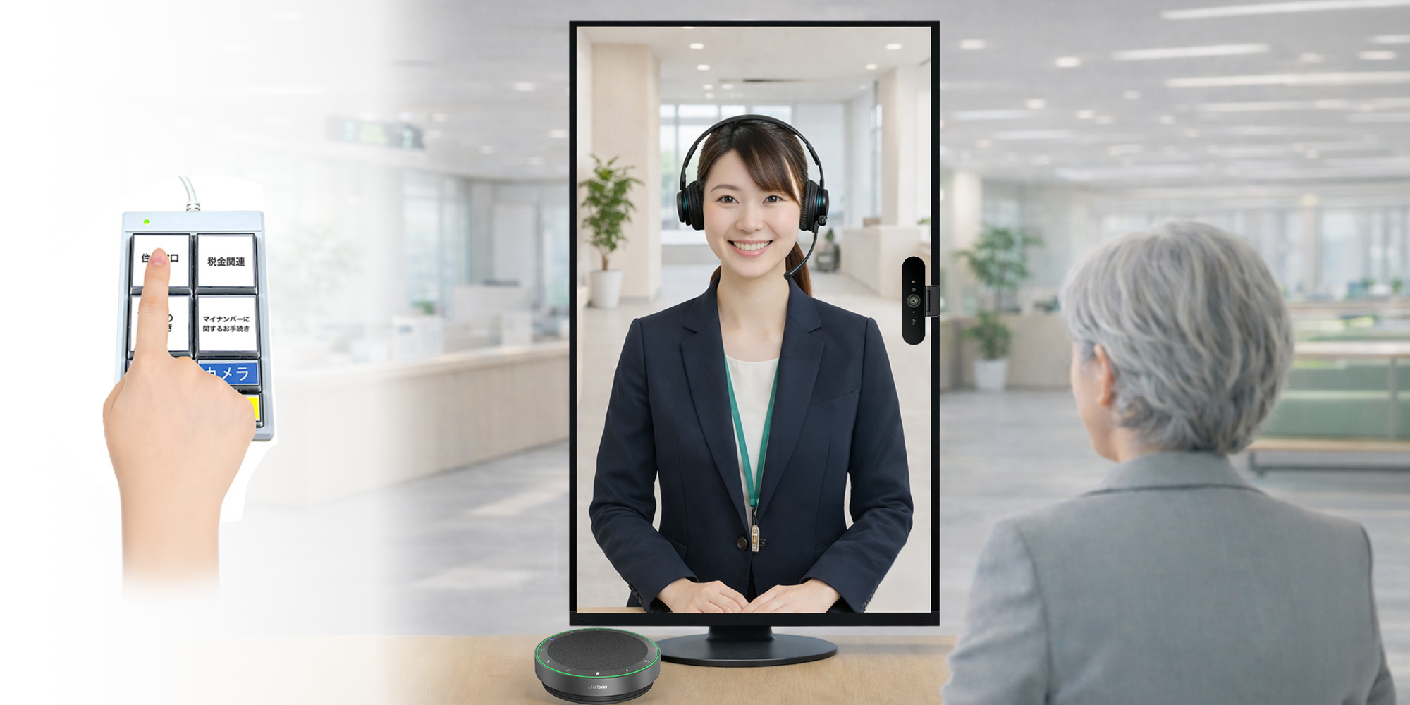 庁舎間の業務分散による住民の移動負担を解消するため、テレビ窓口システム「テレ窓」を導入。高齢者にも使いやすい設計で、どちらの庁舎からでも手続きが可能に。行政サービスの効率化と住民の利便性向上を実現し、今後は他拠点への展開も予定しています。